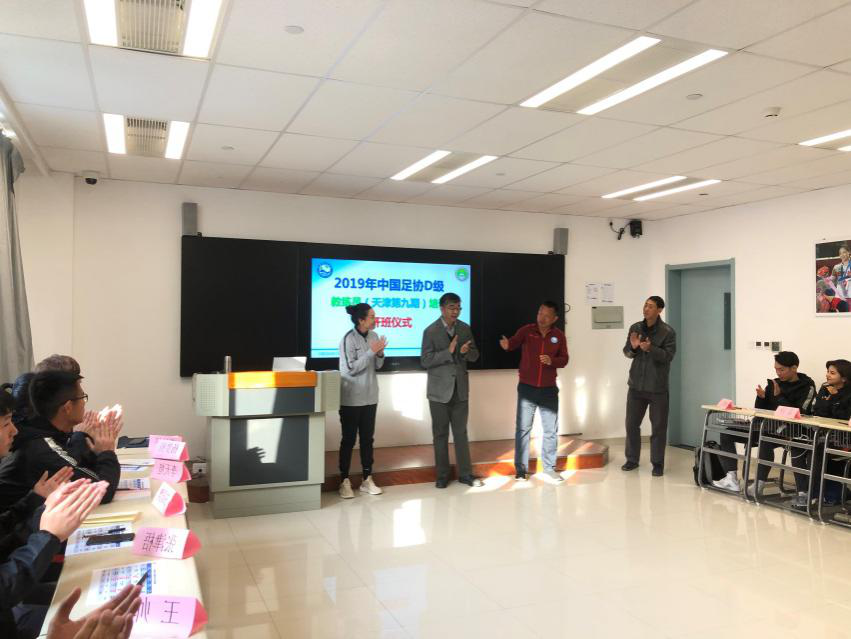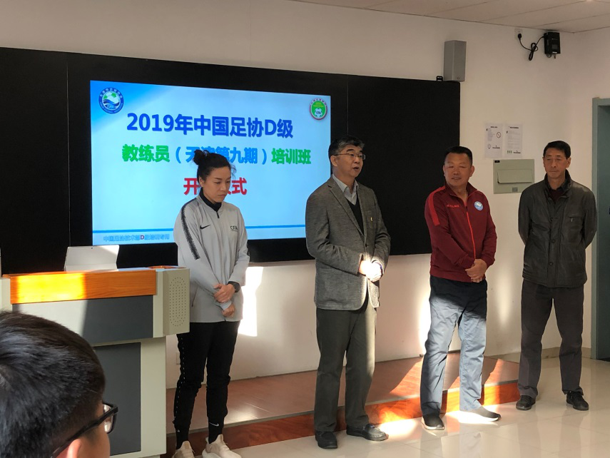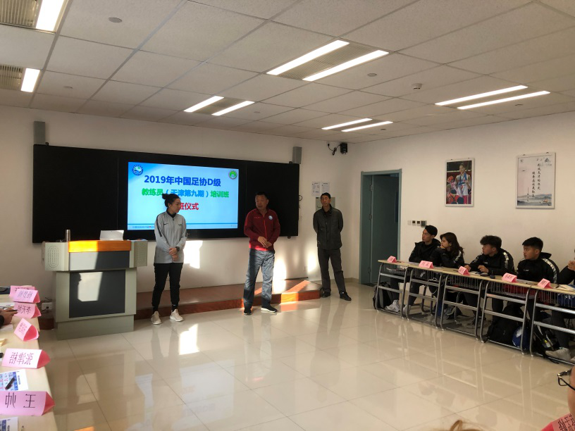 在市体育局领导、院领导和天津足协的助力下,11月20日上午,天津足协与天津体育职业学院共同合作的首期“中国足协D级教练员培训班”在我院开班,院党委书记王伟、天津市足球协会副主席兼秘书长崇勇、院足球方向带头人施连志与天津足协D级讲师刘晨出席,中国足协委派D级教练员讲师王婷婷进行授课,我院足球方向全体学生参训,并将参与此次中国足协D级教练班为期七天的集中学习。本期培训班也是天津足协本年度举办的第九期教练员培训班,通过讲师的专业指导,将进一步完善学生足球理论知识和实践能力,通过结合足球从业的实际经验,为学生们今后的执教打下坚实的基础。