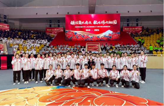 9月26日下午,“强国复兴有我 歌唱伟大祖国”天津市庆祝中华人民共和国成立75周年群众歌咏活动在天津人民体育馆举办。我院61名师生代表与全市各级机关、企事业单位党员干部,公安干警,消防员,医护人员,青年师生及基层群众代表欢聚一堂,用真情的讲述和真挚的歌声,表达对新中国75周年华诞的祝福。